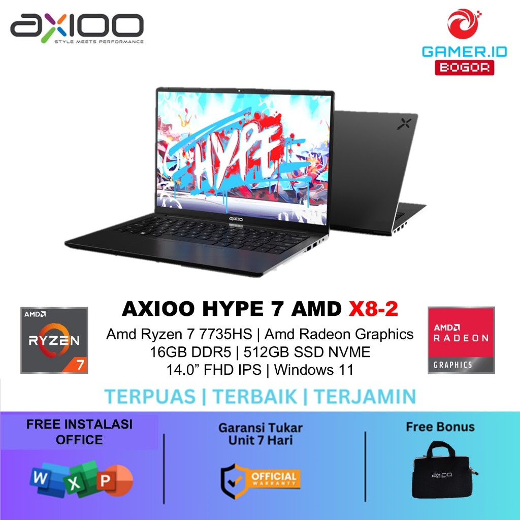 Axioo Hype 7 Amd X8-2 Amd Ryzen 7 7735HS 16GB 512GB Windows 11 14.0 Full HD Ips HDMI