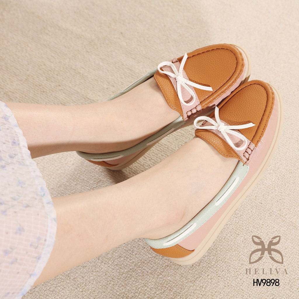 HELIVA MIRUNA Loafers Kasual Wanita Warna-Warni dengan Tali Dekoratif Sol 2cm HV9898