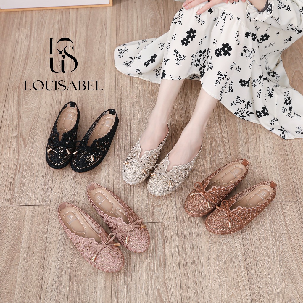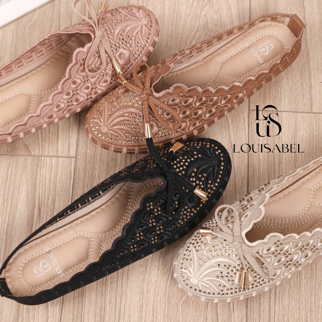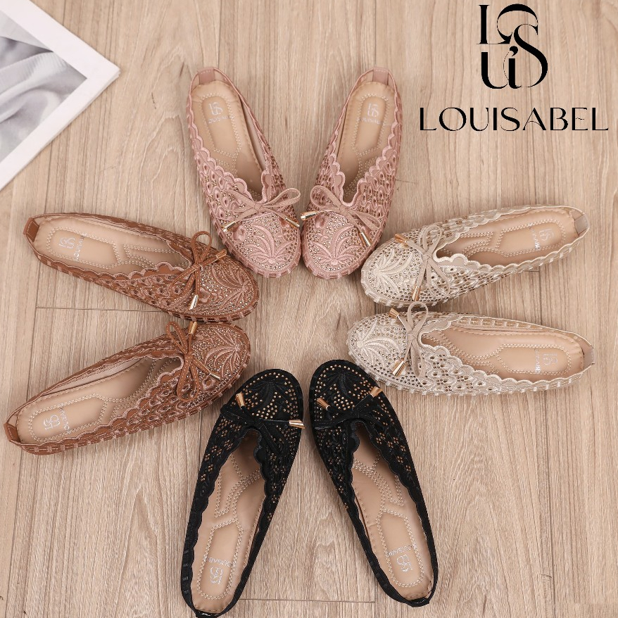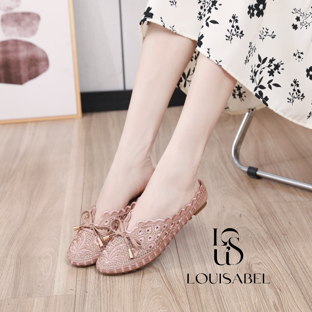 LOUISABEL Lace Flat Shoes Loafer Wanita Tali Pita LSB-JN337