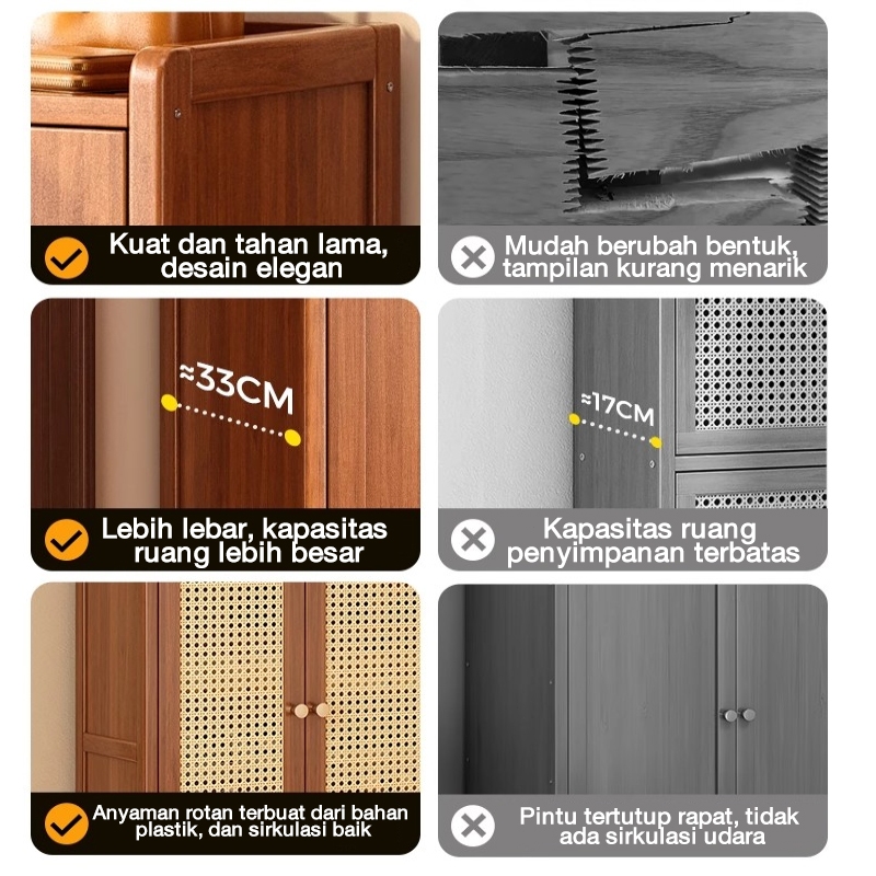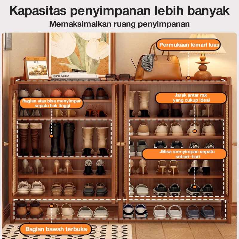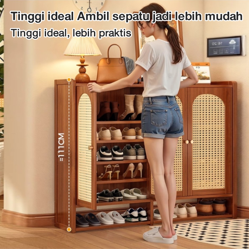 Lemari Sepatu Rotan 4 pintu Lemari Sepatu Kayu Minimalis Lemari Sepatu Tertutup Serbaguna Lemari Sepatu Jaring