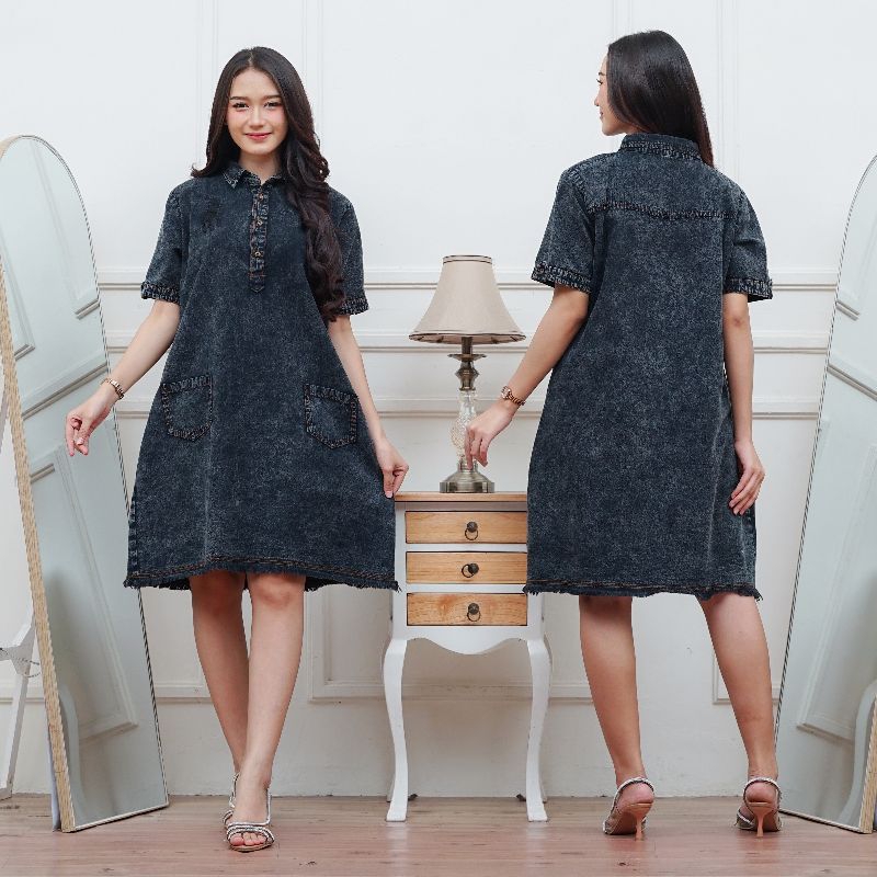 Tunik Jeans Wanita Dewasa Terbaru 2025 Kekinian Import Harga Murah Model Jumbo Bordir Ld 110,ld 120 dan ld 130cm