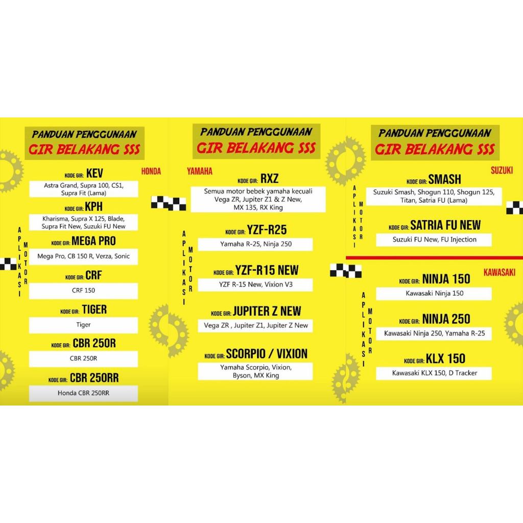 SSS Gear Belakang KPH Kharisma Supra Fit New Supra X125 Blade Revo Absolute Tipe 415 Tipis 428 Tebal Original SSS RACING