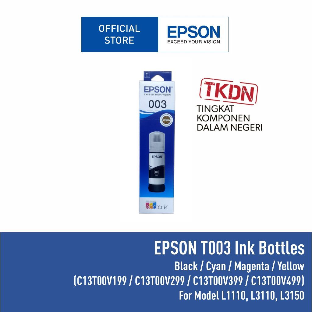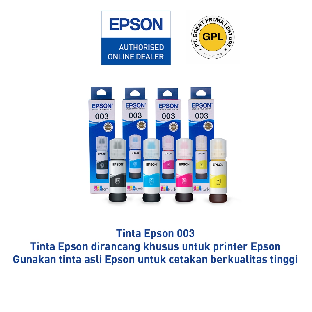 Tinta Epson 003 T003 T-003 Original Hitam Biru Merah Kuning L1110 L1210 L3110 L3210 L3150 L3250 L3550 L5190 L5290 L5590