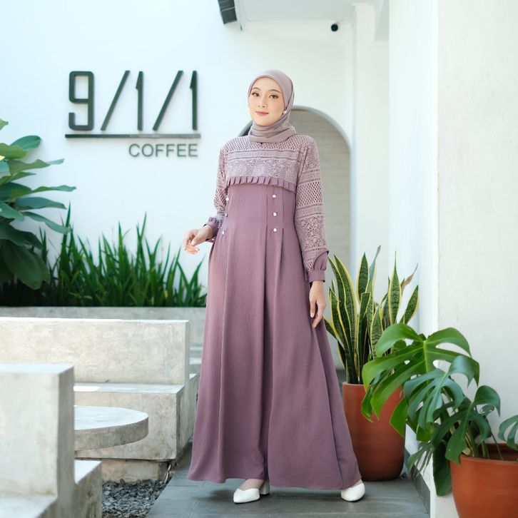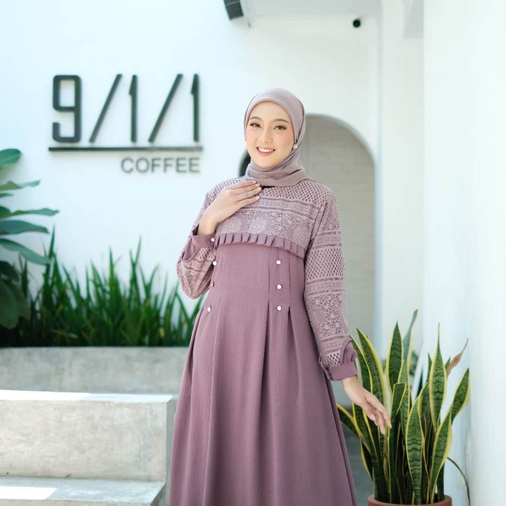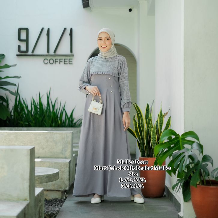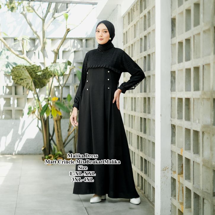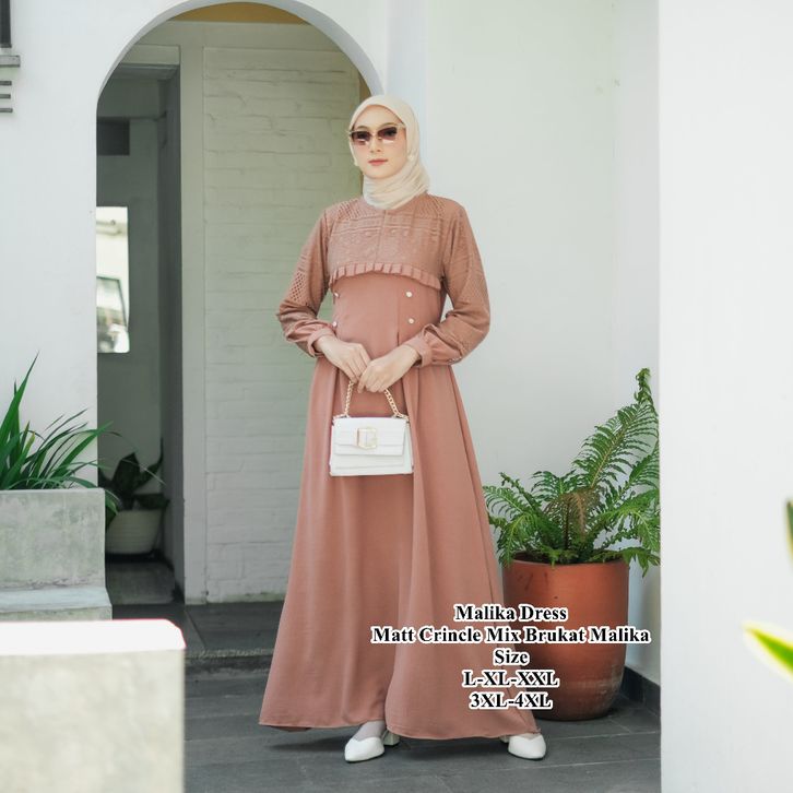 Gamis Wanita Super Jumbo L XL XXL 3XL 4XL Ld 100-140cm Inara Dress Crincle Airflow Mix Brukat Malika