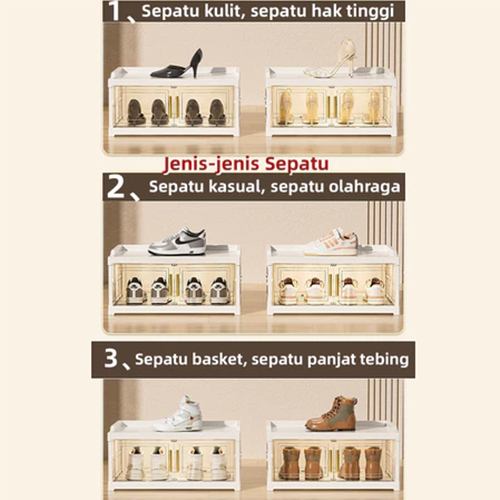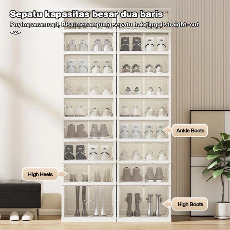 E-TIFE Kotak Sepatu Lipat Rak Sepatu Susun Lemari Sepatu Rak Sepatu Lipat Transparan Plastik