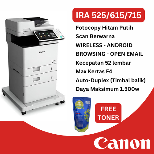 Canon iRA 525 / 615 / 715 (ANDROID) - Mesin Fotocopy Rekondisi Eropa 98 PERSEN (Ex Jerman)