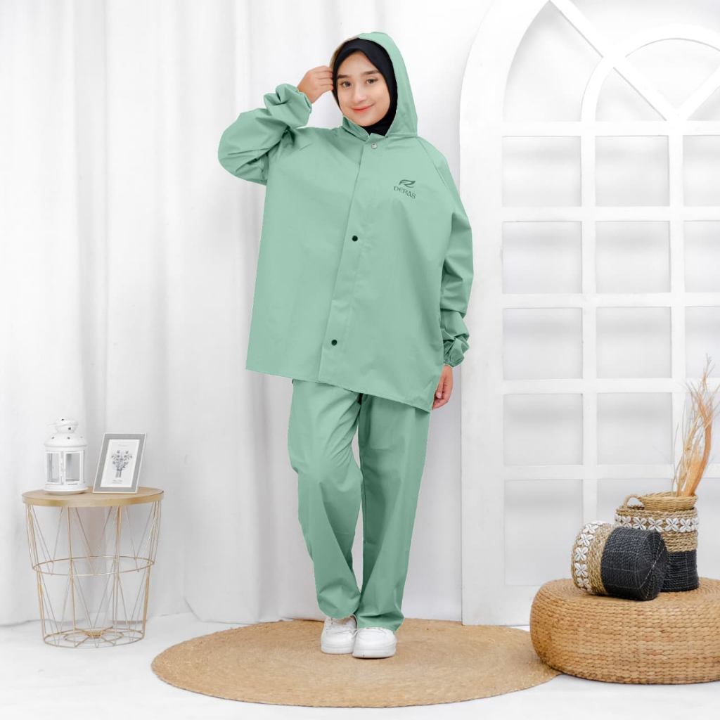 DERAS Jas Hujan, Mantel Dewasa Pria Wanita Tebal Elastis Bahan PVC Super Premium Awet dan Tahan Lama
