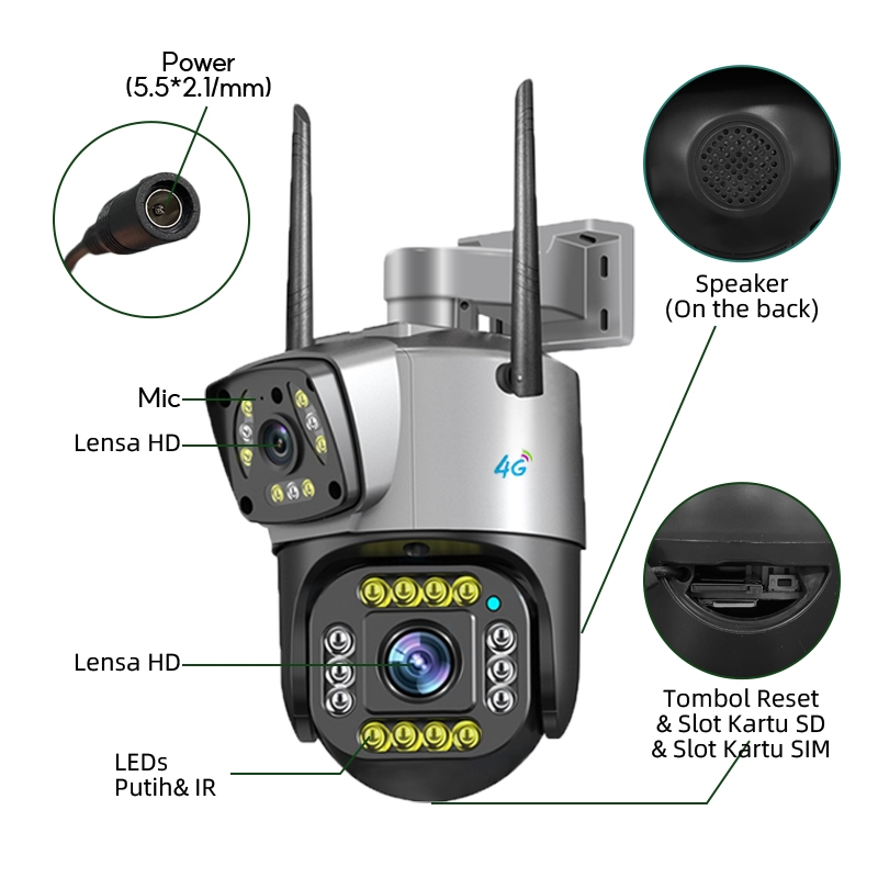 CCTV 4G Dual Lens Outdoor Tanpa WiFi Tahan Hujan Pantau HP Malam Jelas Audio Dua Arah Gratis SIM