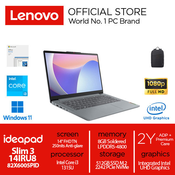 Lenovo IdeaPad Slim 3 14IRU8 Core i3-1315U 8GB 512GB 14" Win11+OH2024