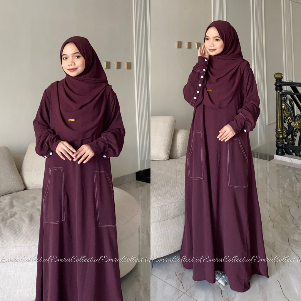ABAYA LUBNA FREE PASMINA OVAL SET GAMIS HIJAB ABAYA BENANG TIMBUL BAJU UMROH WANITA - EMRACOLLECT.ID
