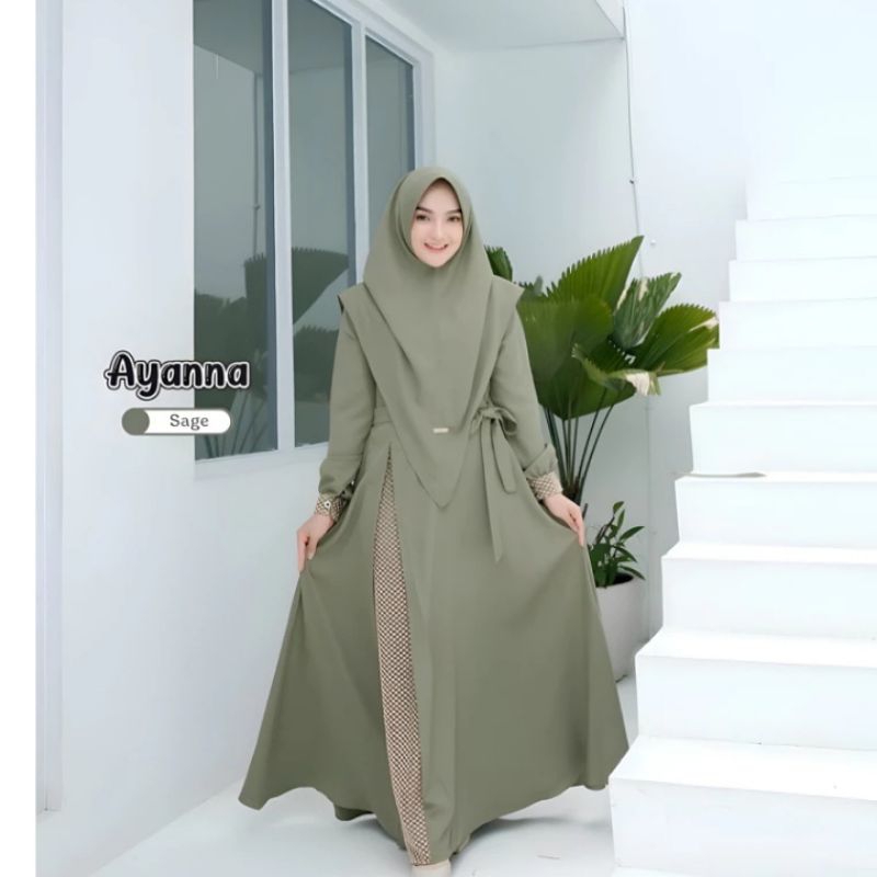 Gamis Syari set hijab bahan syakila premium resleting depan ada sakunya ukuran M L XL XXL gamis syari plus jilbab terbar