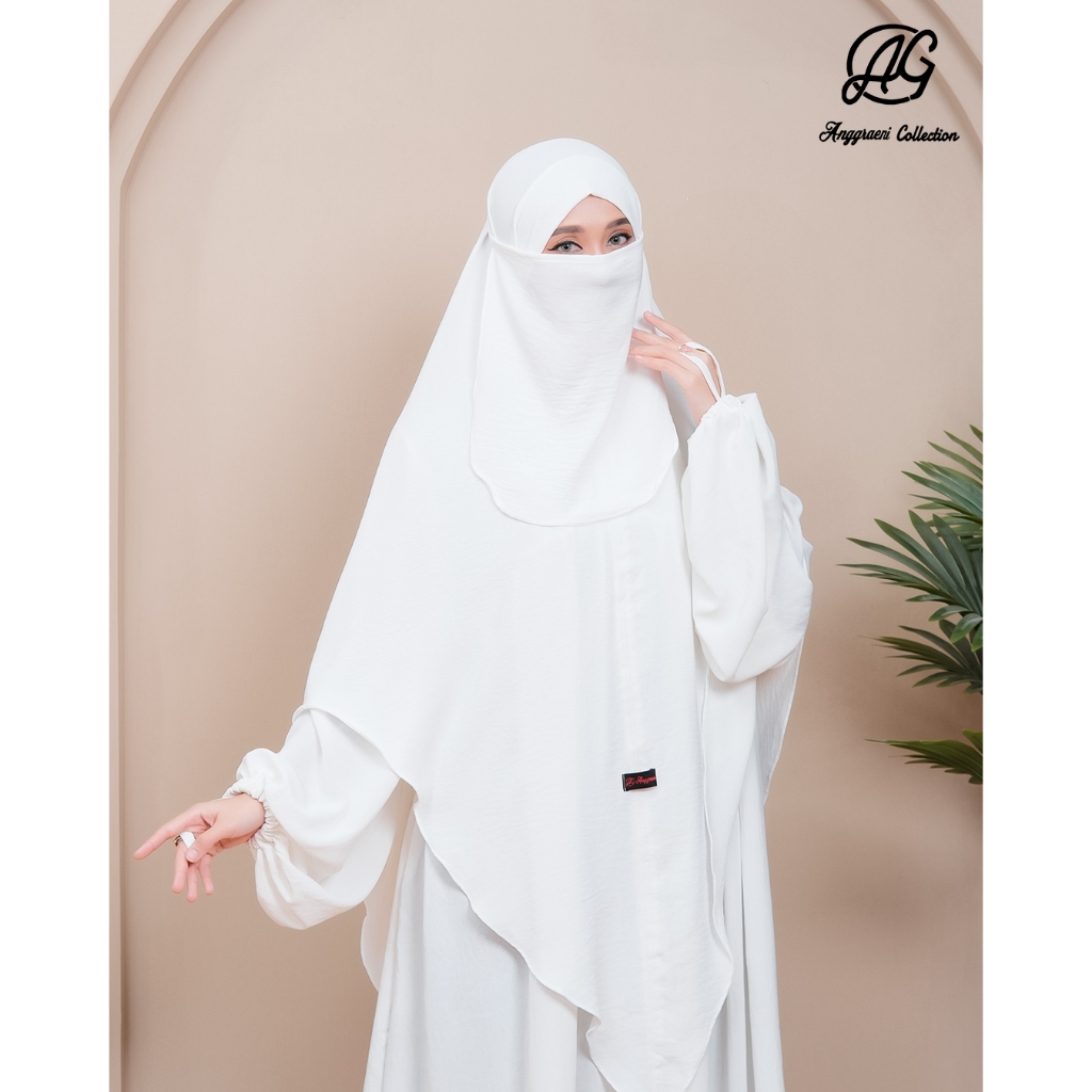 Gamis Candera Set Kerudung Lancip Plus Cadar Tali Tangan Balon Lengan Tali Jari Simple Dan Elegan Dina mis