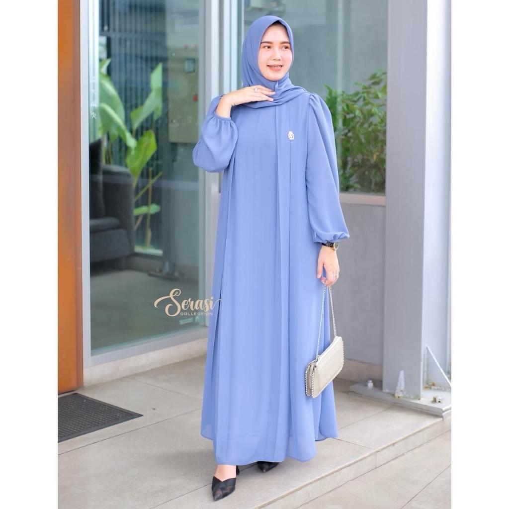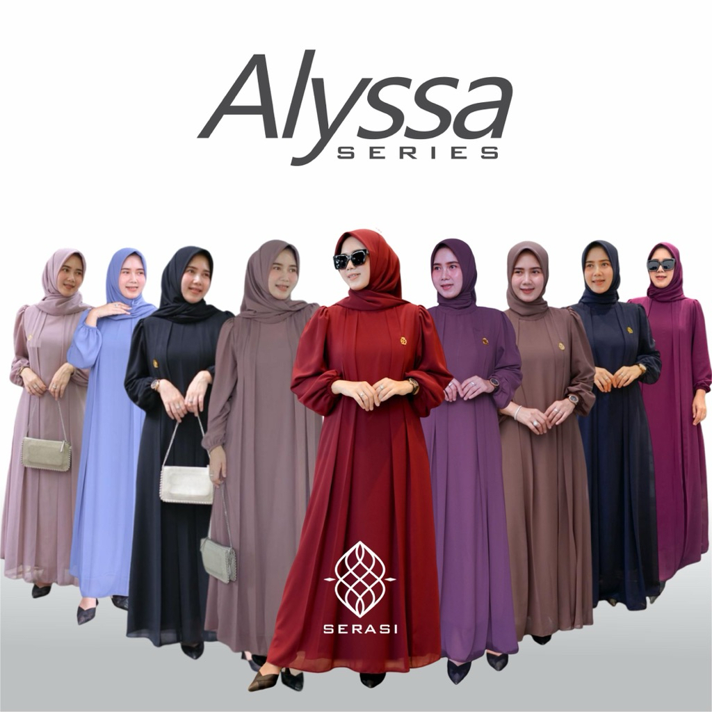ALYSSA DRESS SET HIJAB Gamis Muslim Lebaran Syari Simpel Mewah Ceruty Babydoll Premium Full Puring