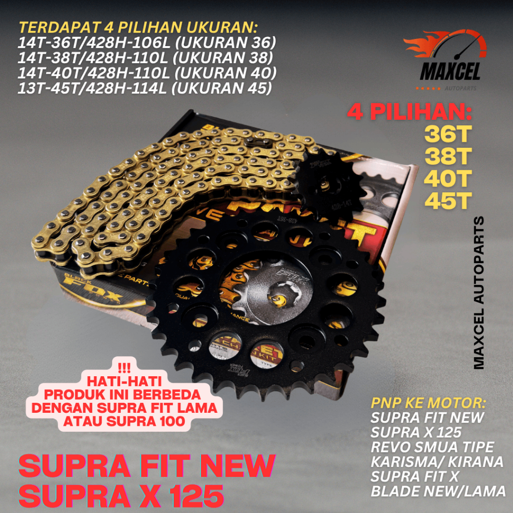 GEAR GIR SET PAKET SUPRA FIT NEW SUPRA X 125 REVO KARISMA KIRANA BLADE BLACKFOX
