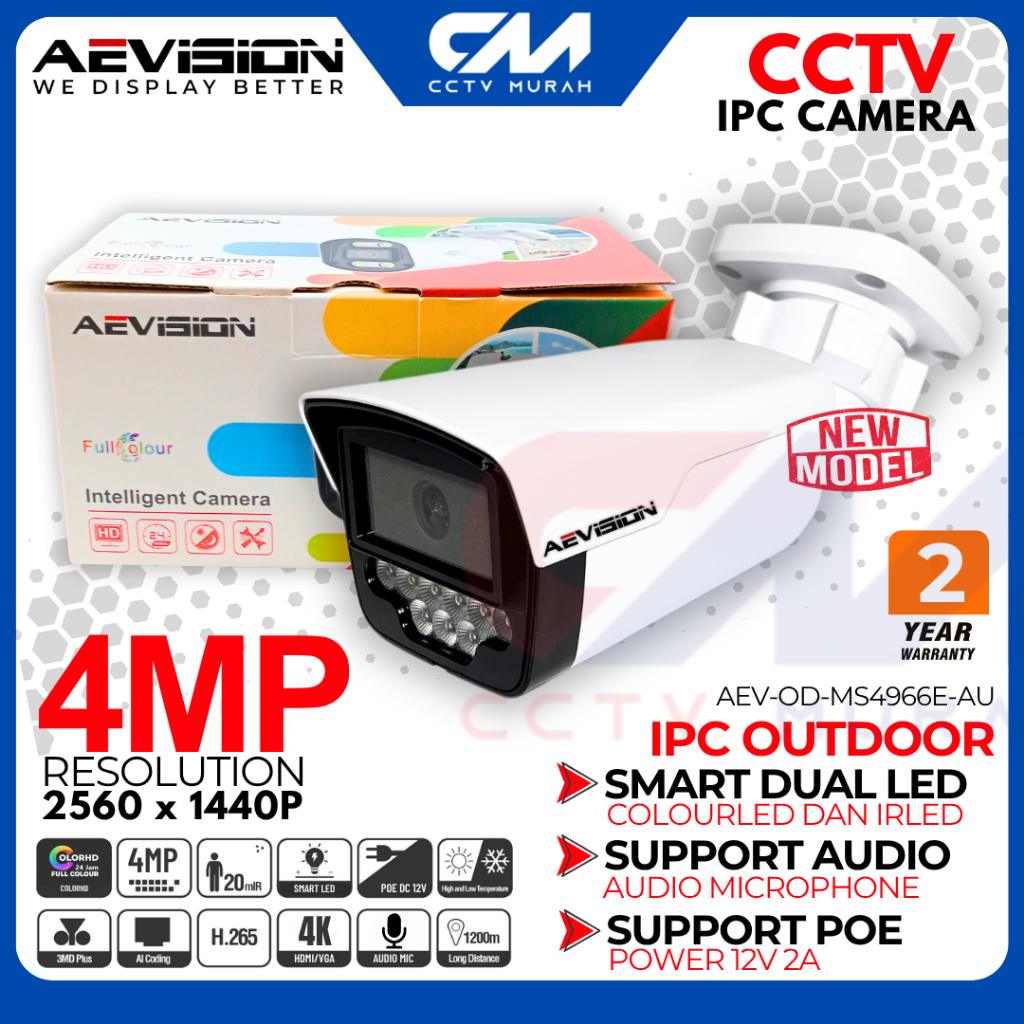 KAMERA CCTV IP OUTDOOR 4MP COLORFULL AEVISION SIANG MALAM BERWARNA CCTV IP OUTDOOR IP66