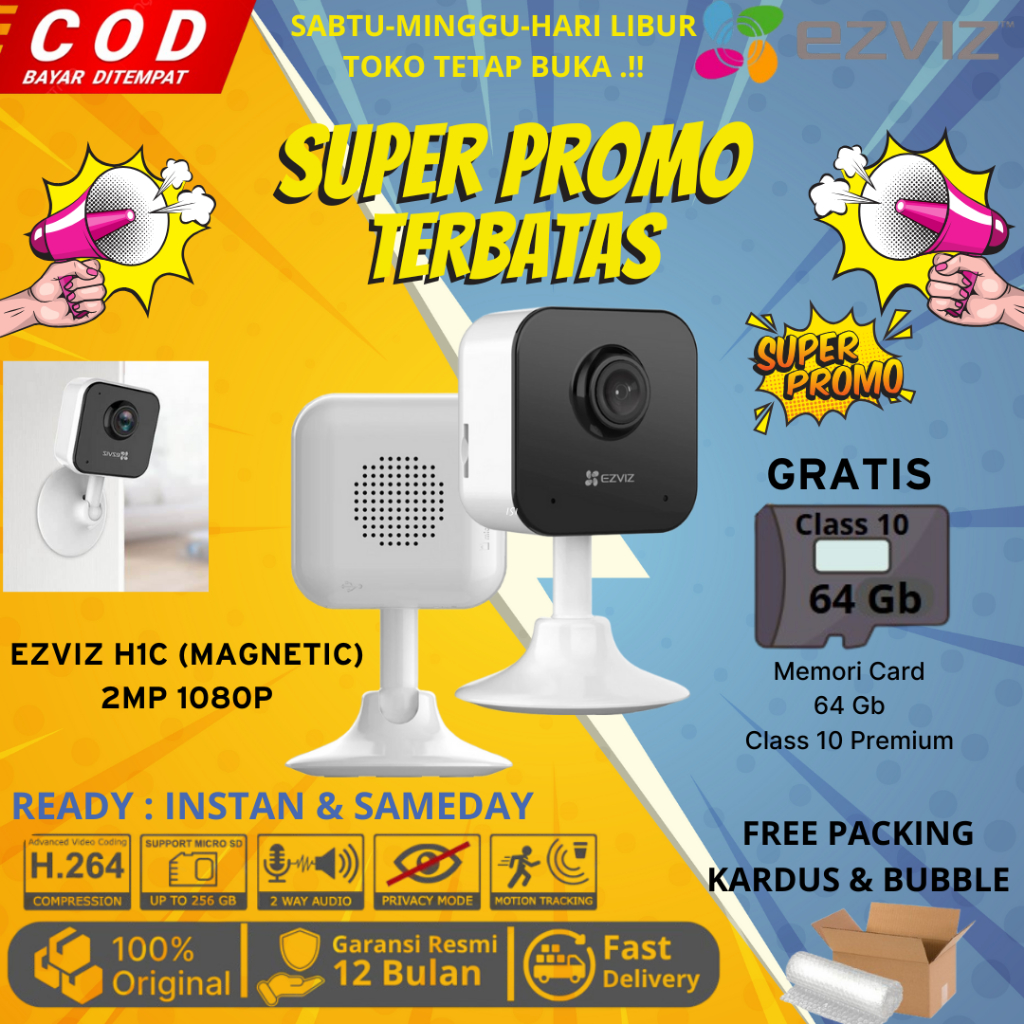EZVIZ H1C 2MP 1080P Gratis Memori CCTV Wifi FHD Smart Home Camera Original