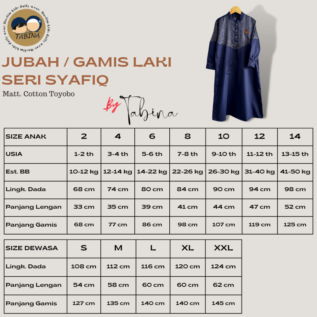 Setelan Koko Kurta Putih Lengan Panjang Anak Laki-Laki Tabina Seri Attar Usia 1 Hingga 16 Tahun