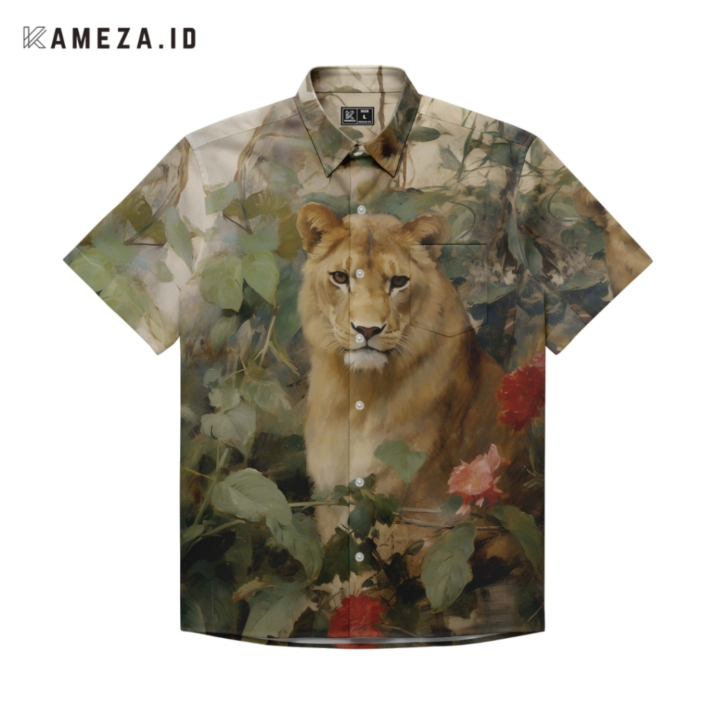 Kemeja Pria Lengan Pendek Vintage Lion - Polyester S-10XL