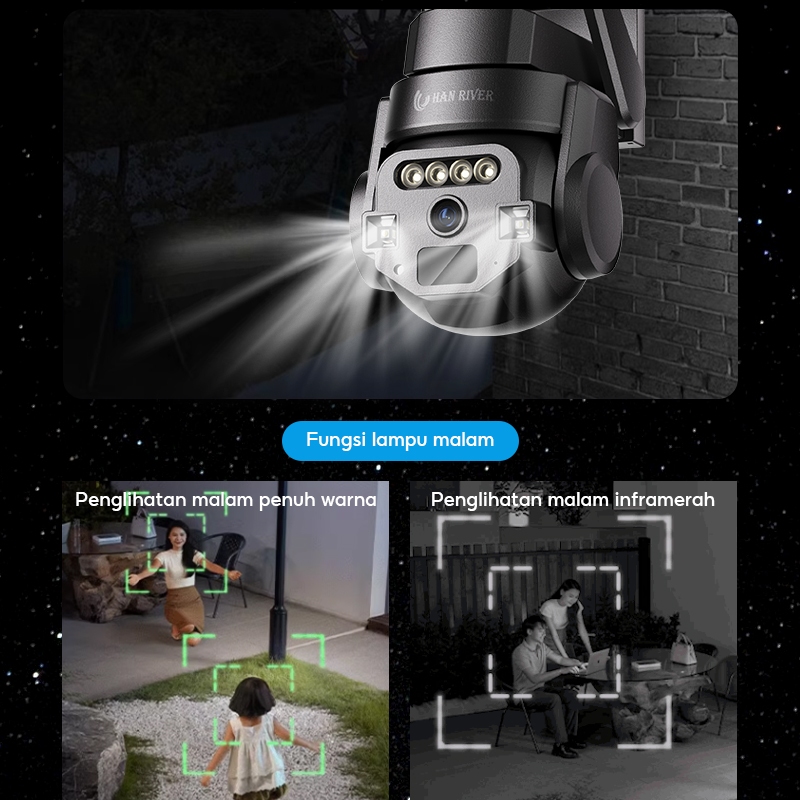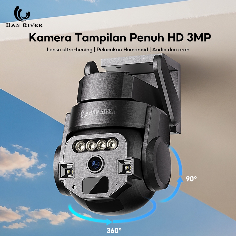 HAN RIVER CCTV Outdoor 3MP HD Full WiFi Kamera Jarak Jauh IP66 Waterproof 360° PTZ Auto Tracking Kamera