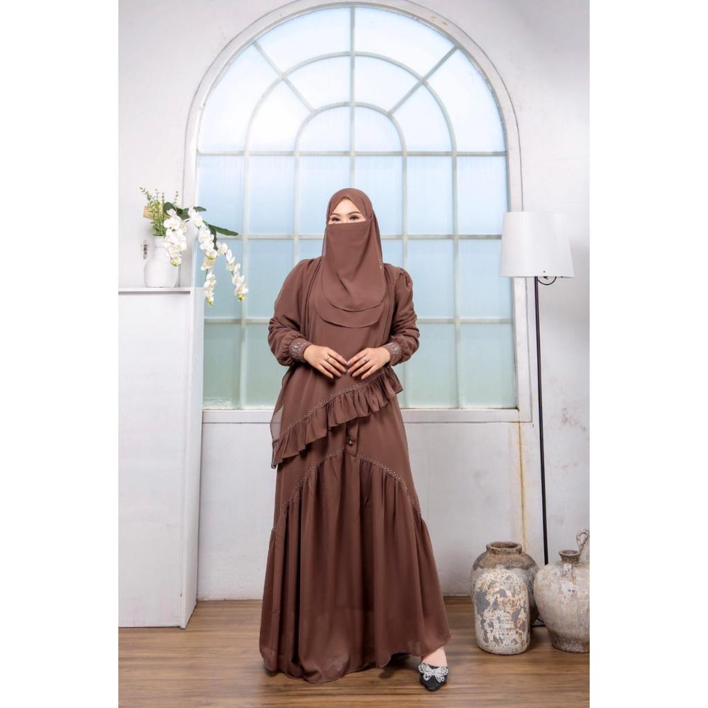 ABAYA DUBAI Set Hijab Syari Mutiara Plus Pashmina FREE cadar