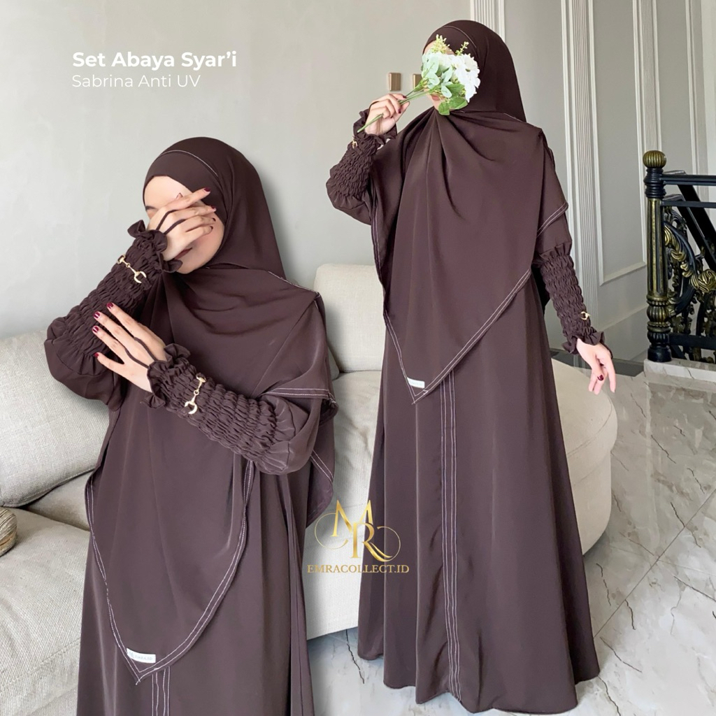 Mina Set Abaya Pashmina Instan Ban Baju Umroh Syar'i Premium Anti UV Abaya Umroh Hitam Jetblack - EMRA
