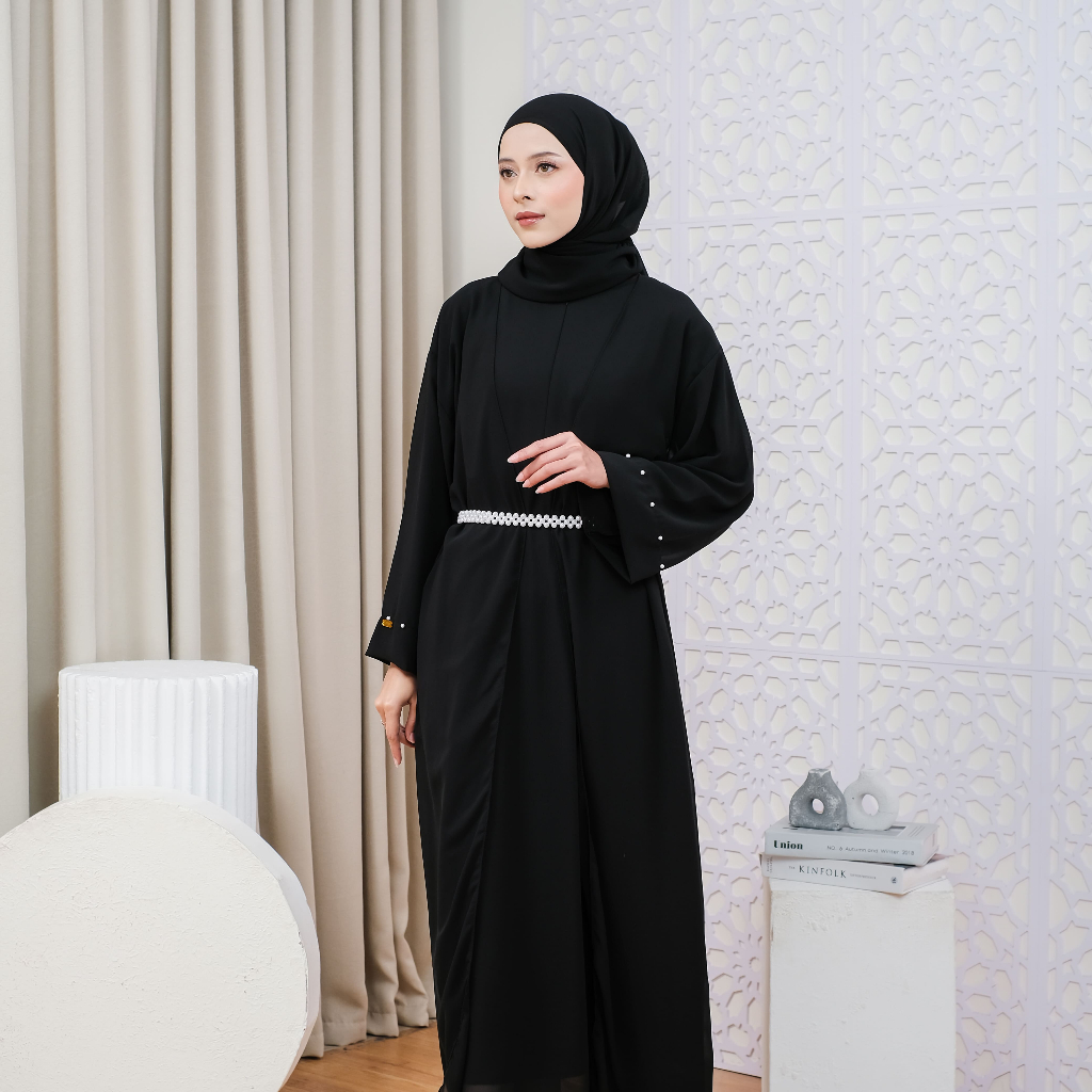Abassya-Alesha set abaya bahan ceruty babydoll full furing 4IN1 Busui friendly free pashmina