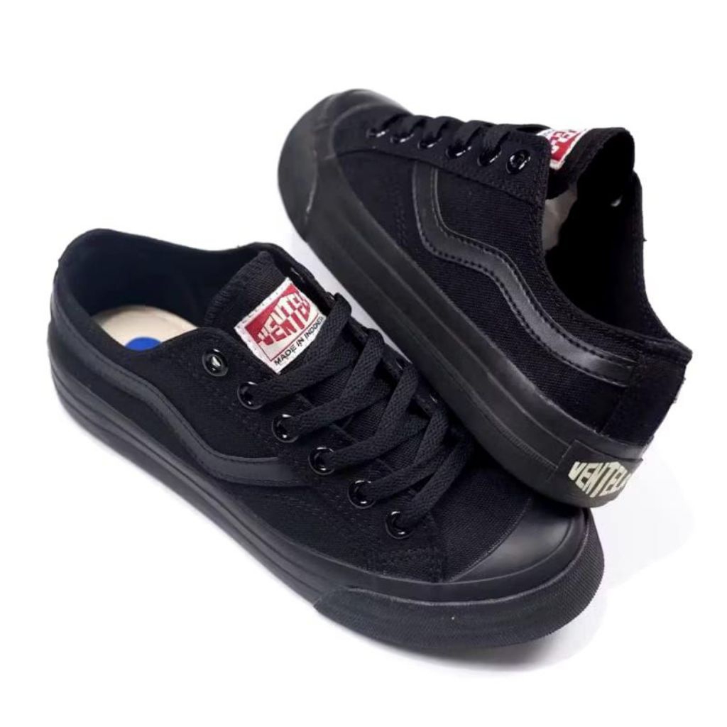 promo sepatu ventela public low full black sneakers sekolah pria wanita all black casual canvas