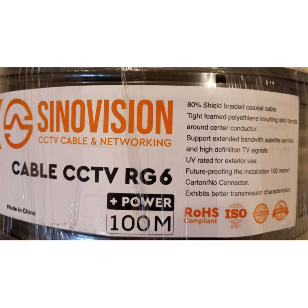 SINOVISION Kabel Coaxial CCTV RG6+Power HITAM Outdoor Premium Series 100M 300M
