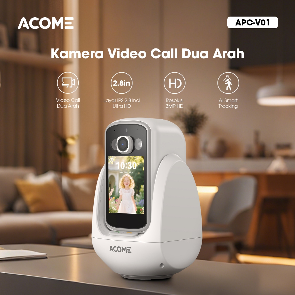 ACOME IOT Camera CCTV APCV01 Bundling Micro SD CCTV Indoor with Video Call Screen Full HD 1296P 3MP Auto Deteksi Gerak Two Way Video Call