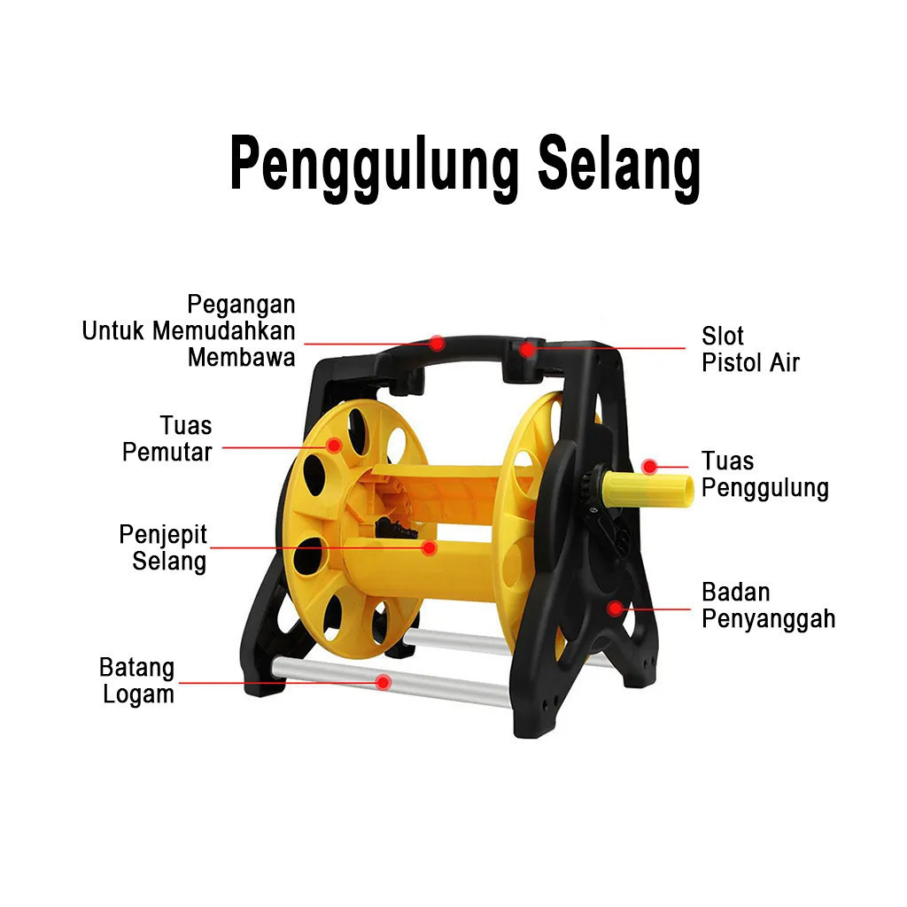 Paket Semprotan Selang Air Gulung 25 Meter Kuning Jet Spray Taman kebunan Alat Cuci Motor Mobil Termurah