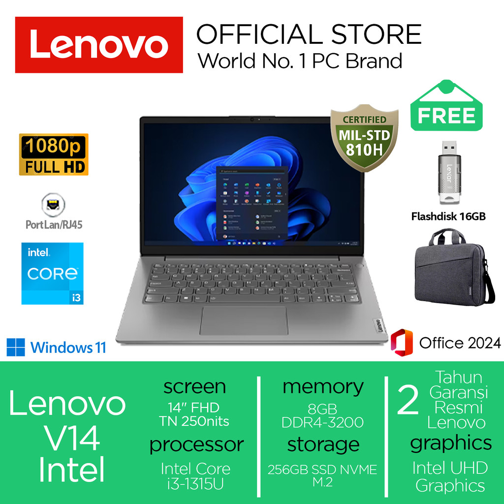 Lenovo V14 i3-1315U 256GB SSD 8GB FHD Win11+OHS