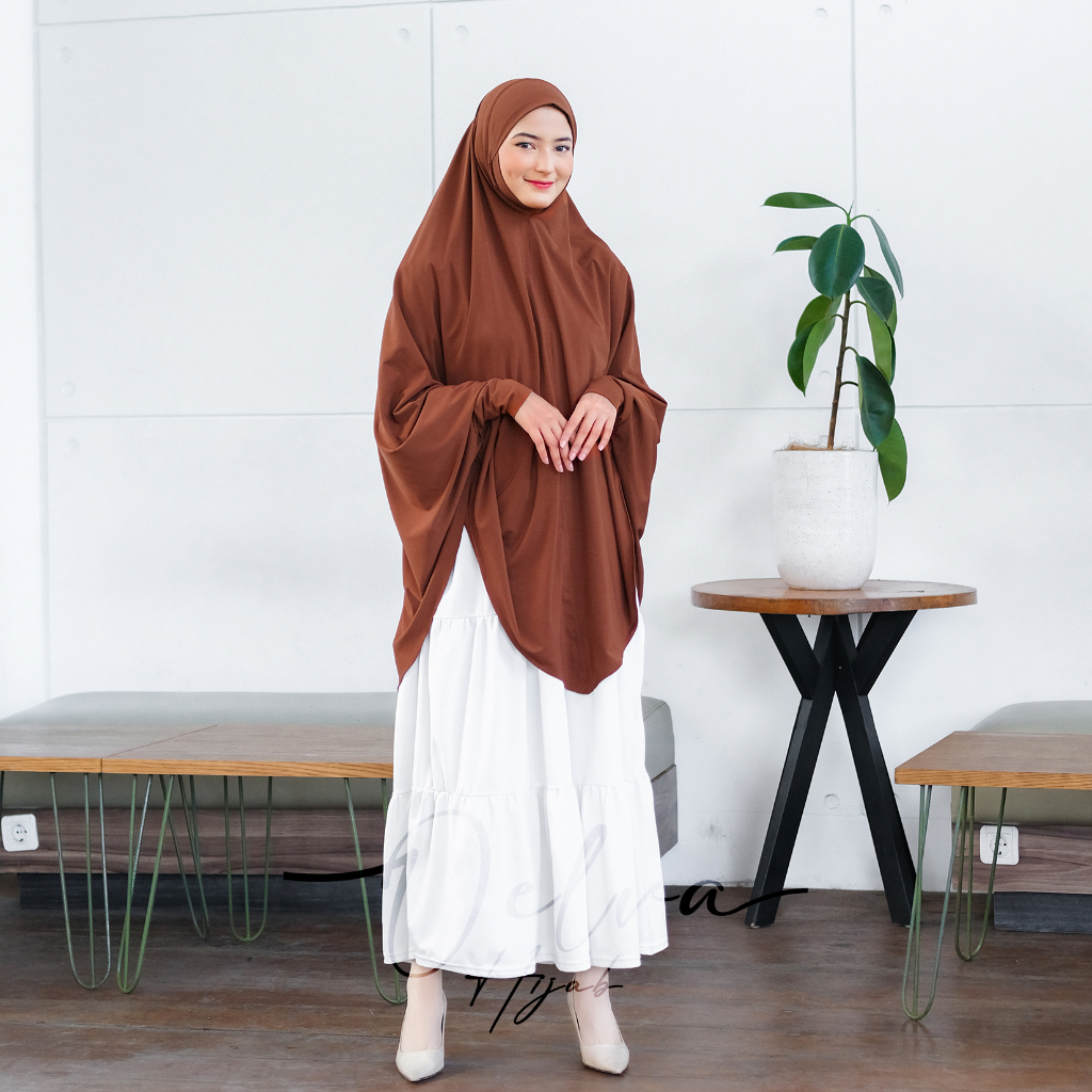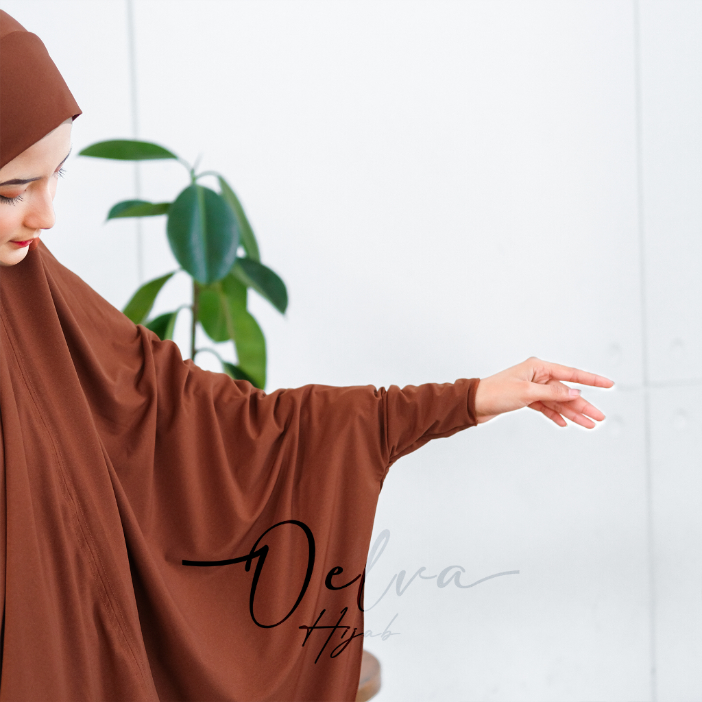 Oelva Hijab - Khimar Jumbo Melayu Lengan Jersey Premium - Model Menutup Dahi dan Dagu (Azwa Lengan)