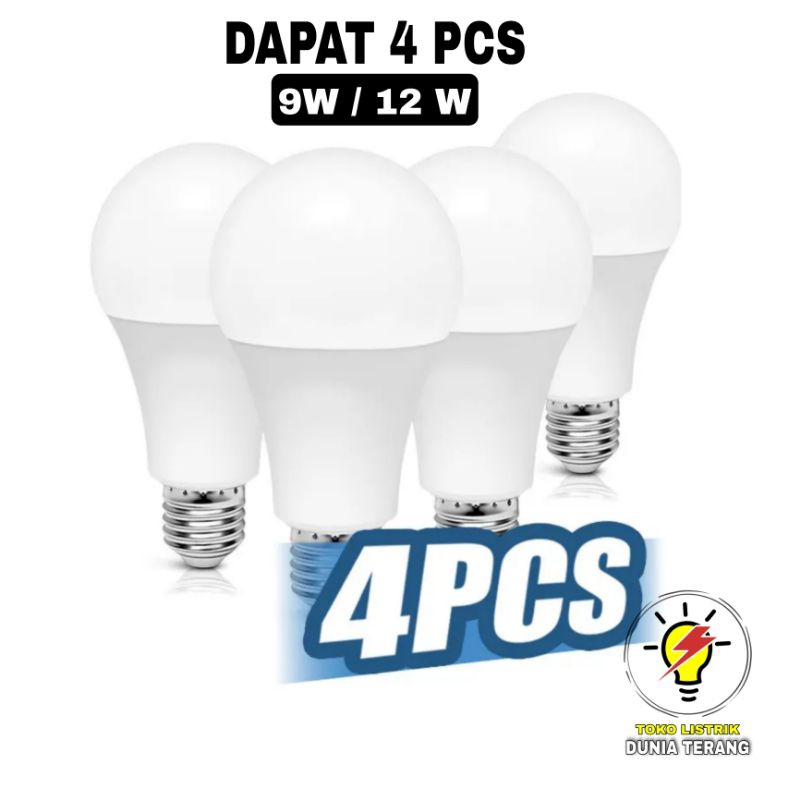 4 PCS LAMPU LED BULB 9W/12W TERANG ANTI COPOT BERGARANSI 1 TAHUN