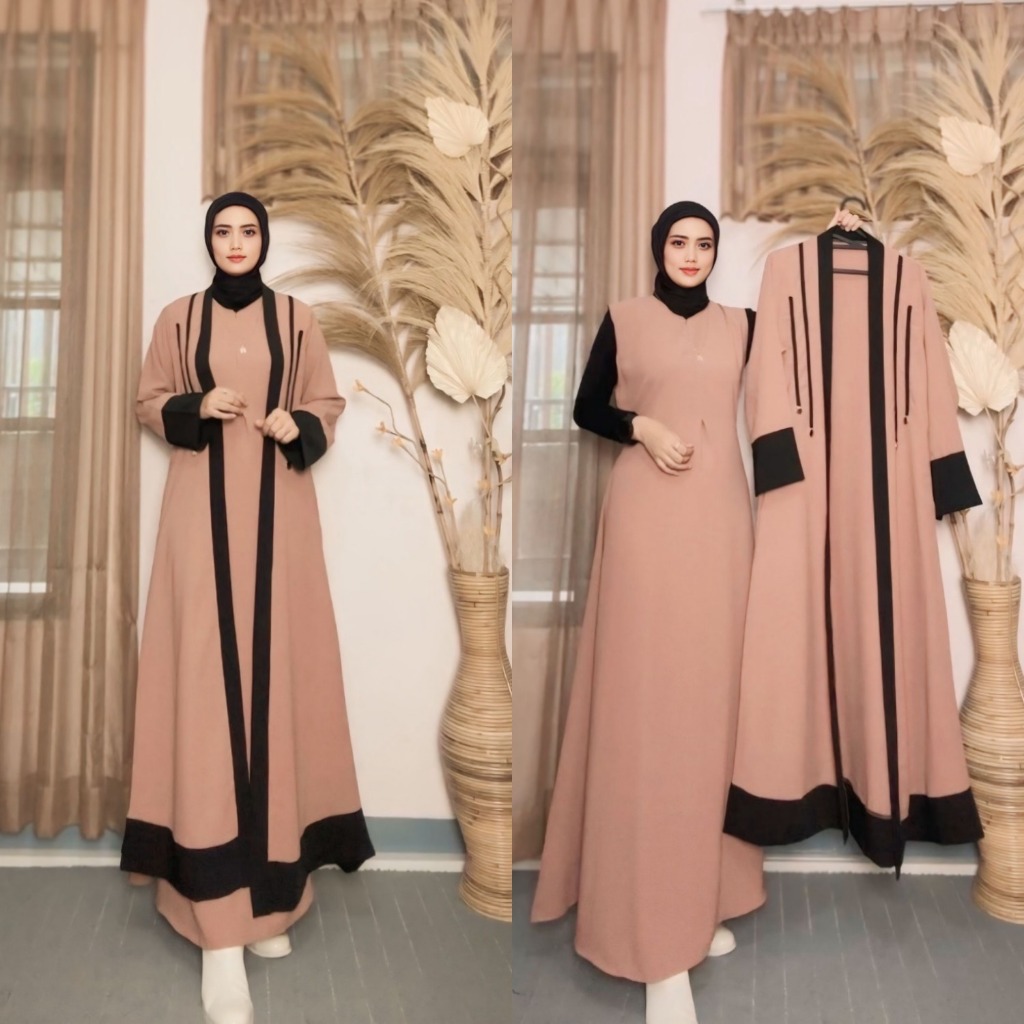 Arumi Set Abaya Outer Dan Inner Premium Muslim Gamis Wanita Lebaran Dewasa Remaja Lembut Basic Turki