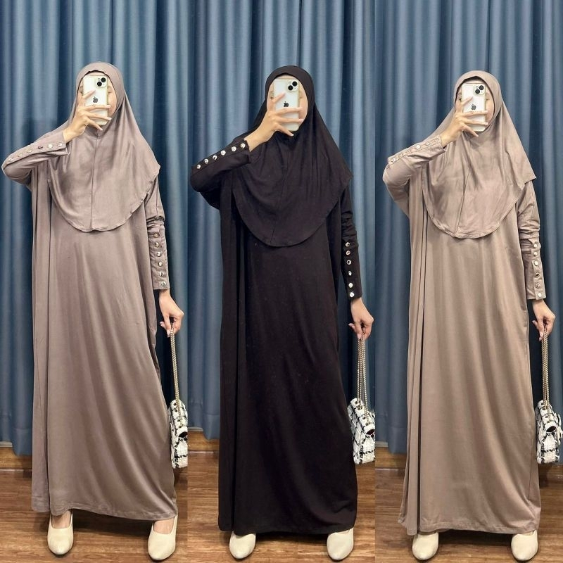 Everly Innara Hijab Button Dress / Gamis Inara + Hijab / Set Abaya Bergo 670