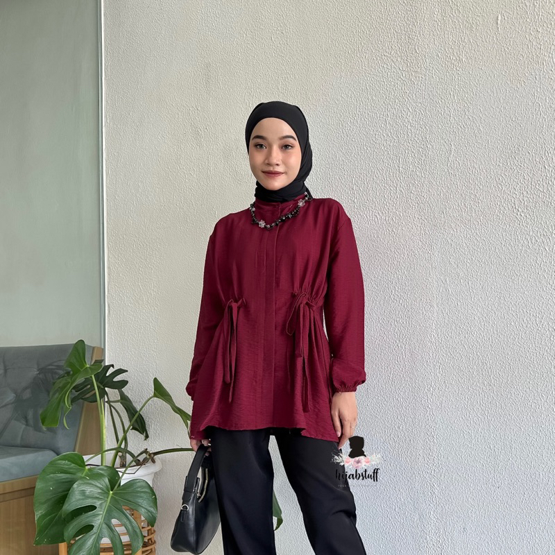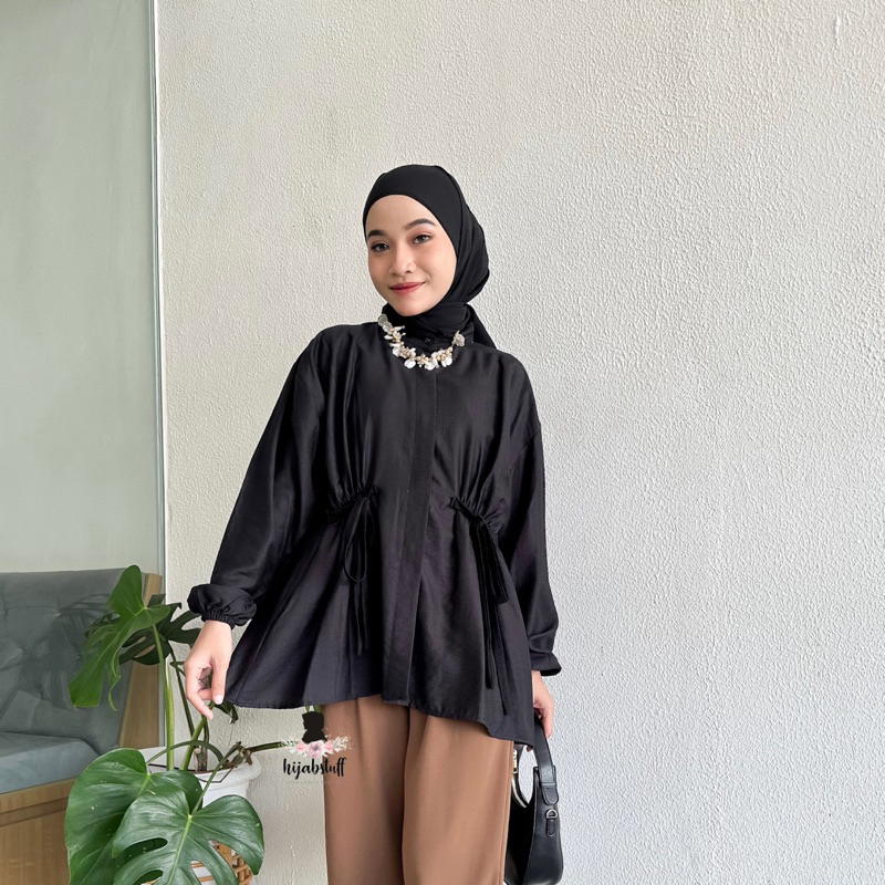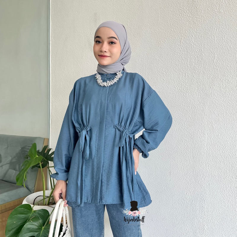 Hijabstuff Alya Atasan Kemeja polo Linen premium serut polos jumbo