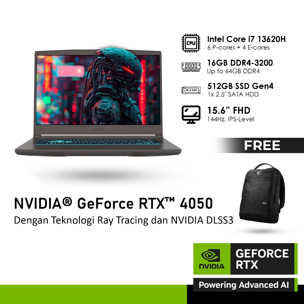 MSI THIN 15 B13VE-2406 GeForce RTX™ 4050 6GB - i7 13620H 32GB 512GB WINDOWS 11 15.6 INCH FHD 144HZ