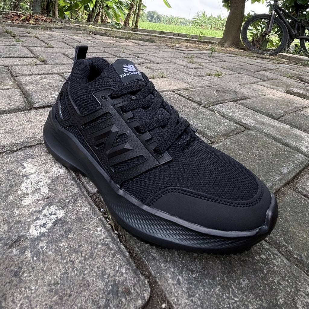 SEPATU HITAM POLOS PRIA WANITA SERAGAM SEKOLAH KERJA KANTOR FULL BLACK TANPA BOX