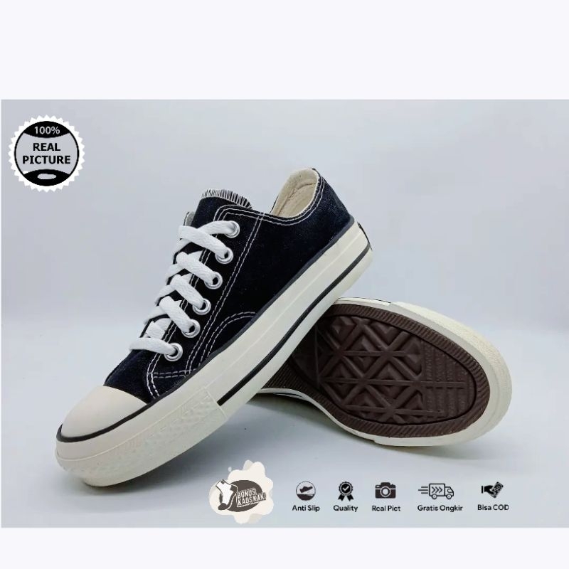Sepatu Sekolah Converse 70s low Chuck Taylor Black white all star sneakers pria wanita