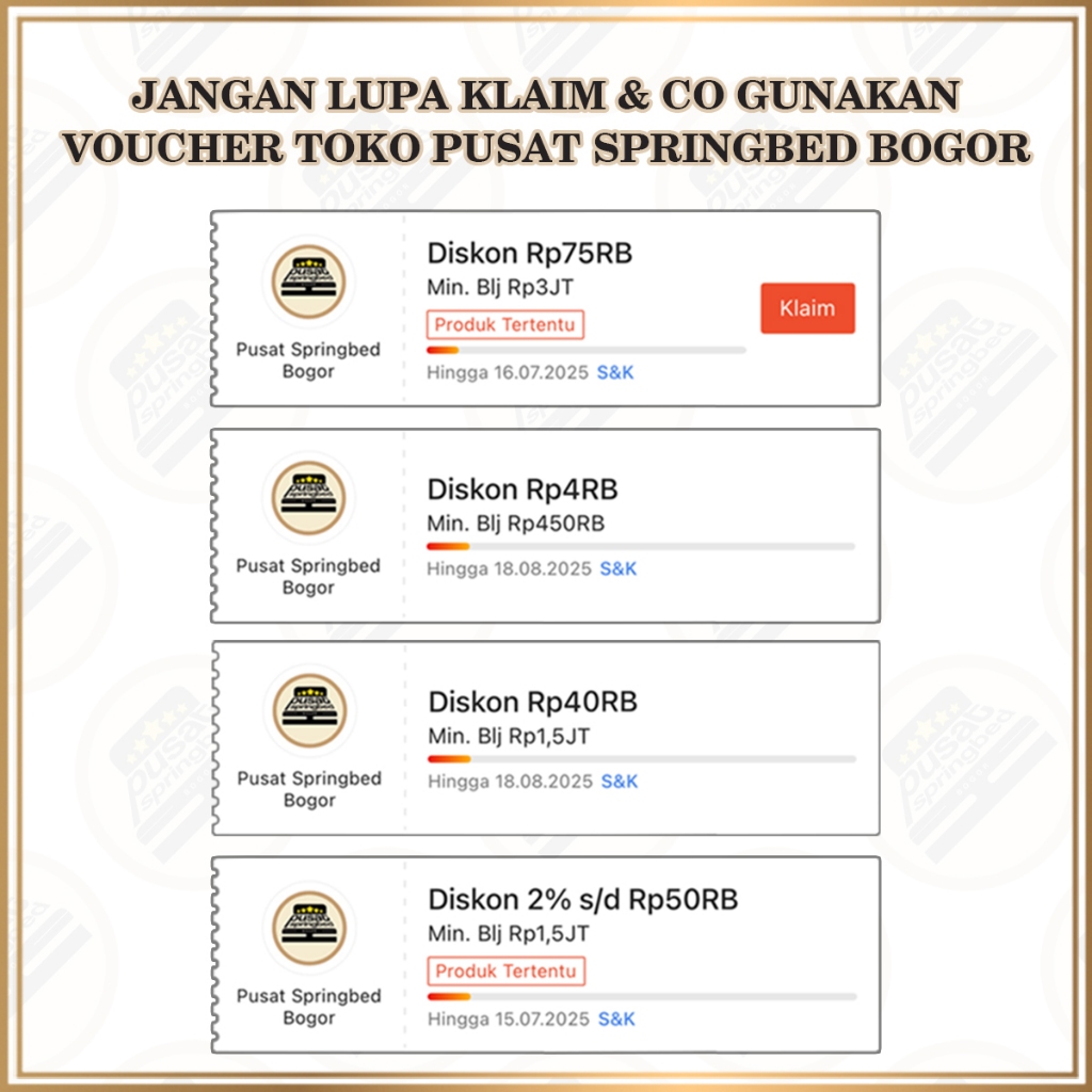 Fullset, Fullset & BanGul, Fullset & Sprei, Fullset & MP, Fullset Paket, Tanpa Sandaran (TS), TS & BanGul, TS & Sprei, TS & MP, Tanpa Sandaran Paket