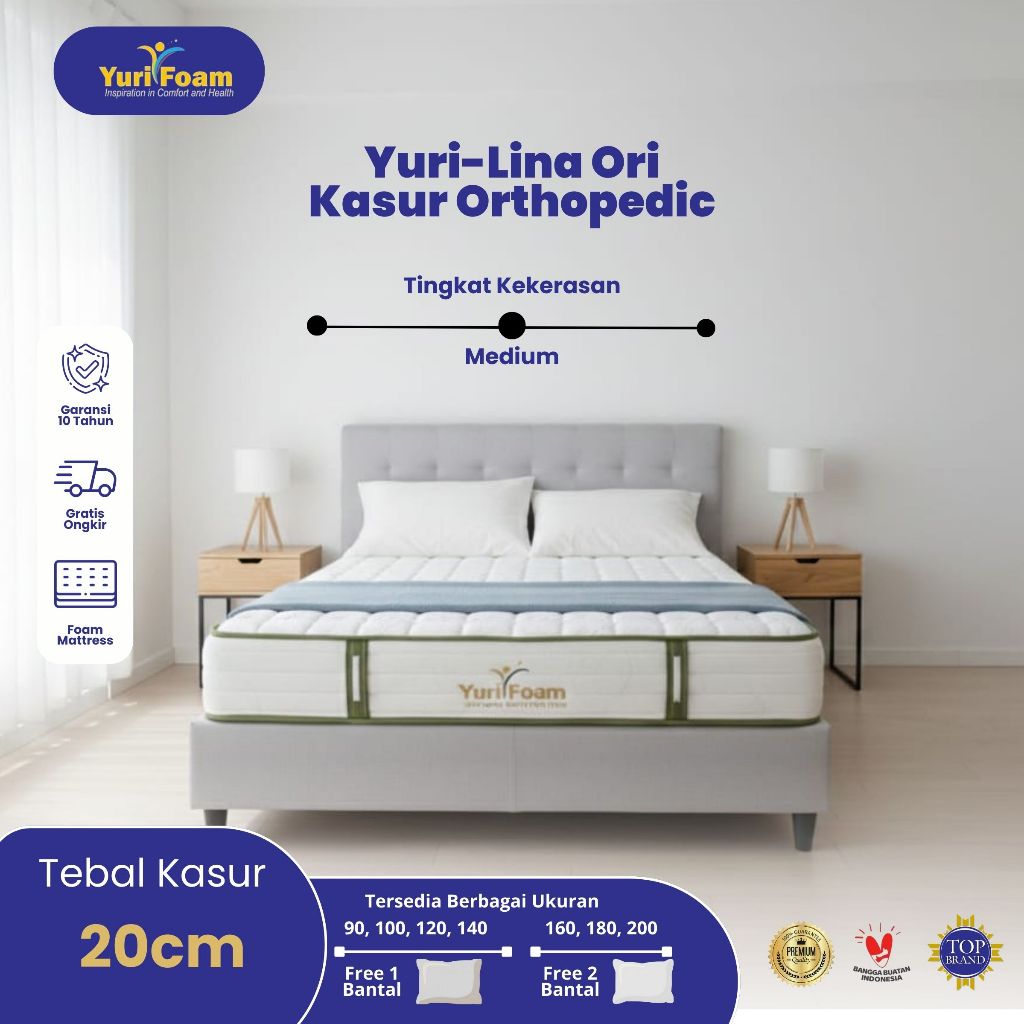 Kasur in Box YURI LINA ORIGINAL 20cm All size (Semua ukuran) Free Bantal 2pcs