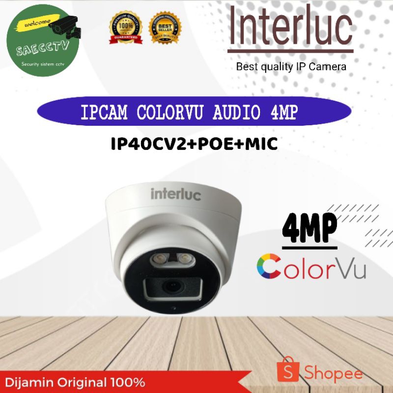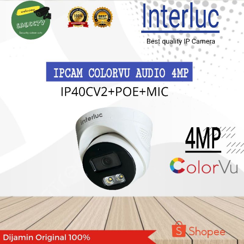INTERLUC IP CAMERA 4MP COLORVU AUDIO IP40CV2 POE MIC INDOR CCTV IP CAMERA