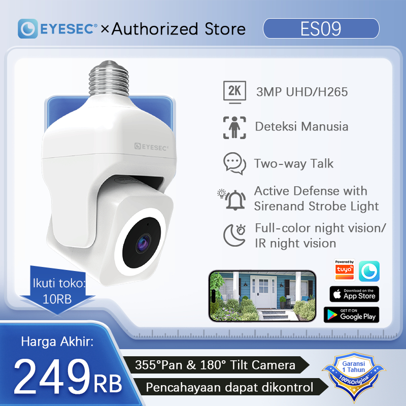 EYESEC CCTV Bohlam Lampu 3MP UHD IP Camera CCTV Indoor 360 Derajat Panoramic Deteksi Gerakan Manusia