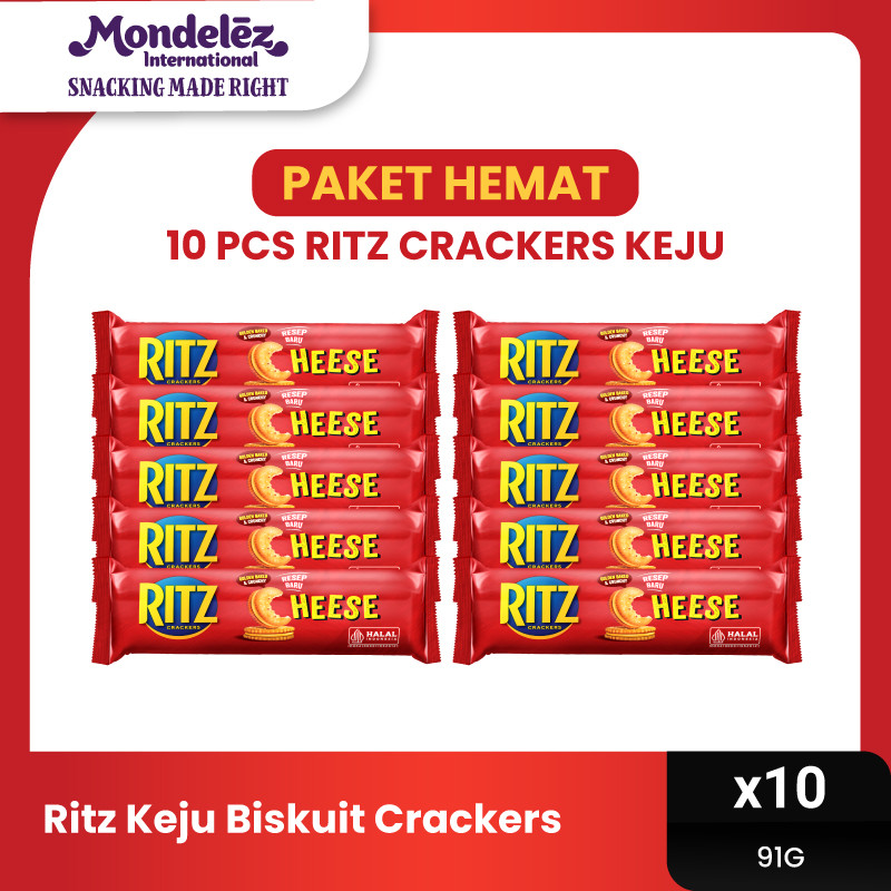 Ritz Cheese Biskuit Crackers 91g x 10 - Multipack Isi 10 Biskuit Keju Gurih dan Renyah Favorit Keluarga Family [PAKET HEMAT]
