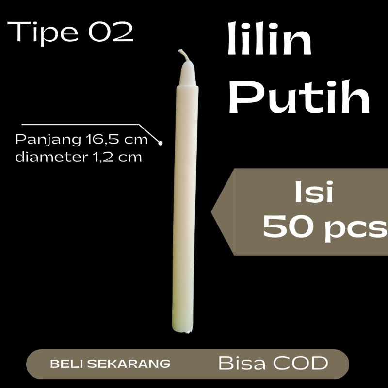 Lilin Putih T02 Isi 50 Batang-murah-Panjang 16 Cm (T02-Isi-50-PUTIH)