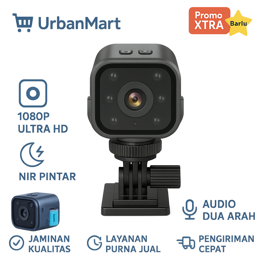 Kamera Mini 1080P WiFi, Pengawasan Jarak Jauh, Penglihatan Malam, Deteksi Gerakan, Interkom Suara, Keamanan Rumah & Kantor