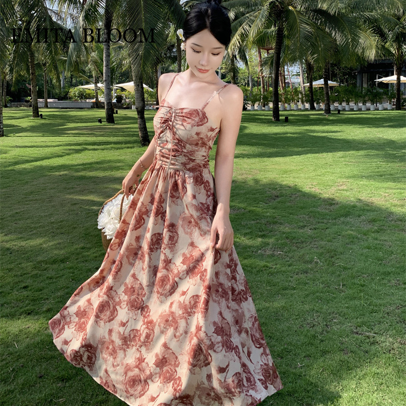 EMITA BLOOM DRESS BIRU MUDA BUNGA BUNGA KOREAN STYLE IMPORT WANITA TERBARU 2025 LONG BOHEMIAN DRESS CANTIK KE PANTAI TALI SATU WANITA INNER DRESS TANPA LENGAN MOTIF BUNGA