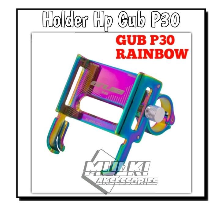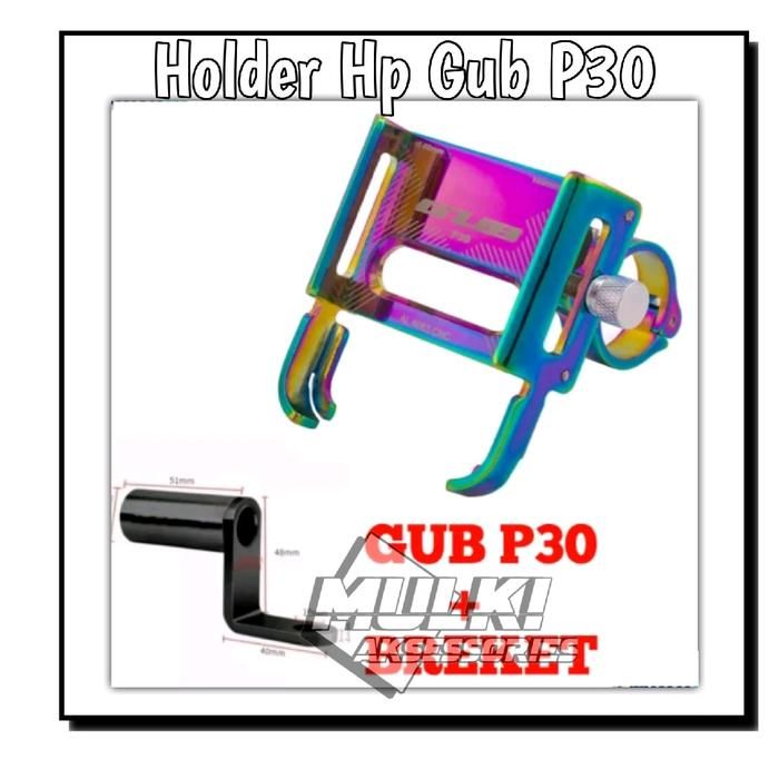 Holder HP PHONE GUB P30 ORI Rotation 360° Rainbow Version Universal sepeda motor Aluminium Handphone Ponsel - Gub P30 H