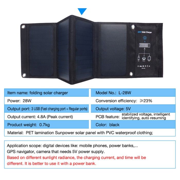 Xionel Portable Solar Charging 21/28/40 Watt with USB Port Fast Charging
