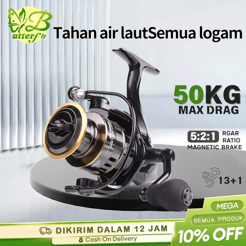 Asli Besi Fishing Reel HE500-7000 MAX Drag 80kg Spinning Casting Rod Reel, Mesin Pancing Reel Murah